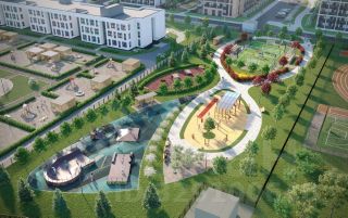 • Места притяжения: фонтан "Бионика", спортивный кластер со скейт-парком, фотозоны с арт-объектами