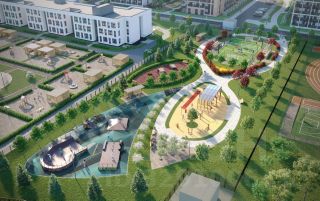 • Места притяжения: фонтан "Бионика", спортивный кластер со скейт-парком, фотозоны с арт-объектами