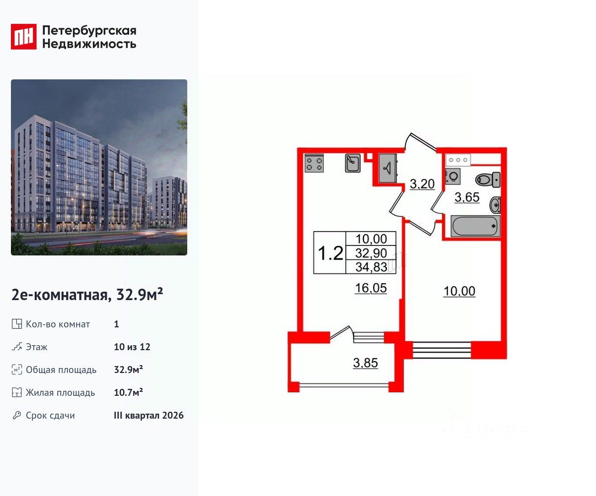 Удобная, классическая, функциональная европланировка, большая кухня-гостиная 16 м², вместительная прихожая 3.25 м². Общая площадь квартиры - 32.9 м², жилая 10.7 м², высота потолка 2.77 м.