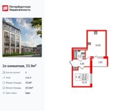 Удобная, классическая, функциональная европланировка, большая кухня-гостиная 15.3 м², просторная прихожая 4.49 м². Общая площадь квартиры - 33.9 м², жилая 10.14 м², высота потолка 2.75 м.