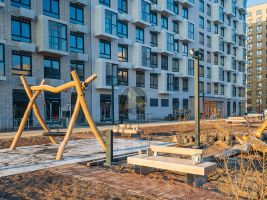 На территории проекта оборудованы современные спортивные и детские площадки. Через весь район проходит широкий пешеходный бульвар для прогулок и спорта, а дома средней высоты не создают тени, пропуская много солнечного света.