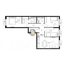 Общая площадь квартиры 88.3 м2