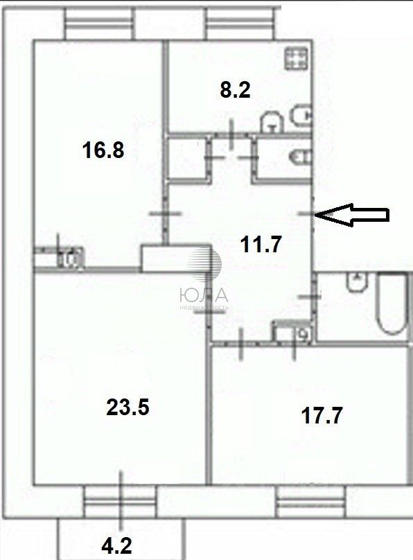 Планировка предполагает три изолированные комнаты правильной прямоугольной формы 23.5 кв.м., 17.7 кв.м. и 16.5 кв.м. Кухня 8,2 кв.м., большая прихожая 11.7 кв.м., раздельный санузел, высокий потолок 3.2 м. Сверху технический этаж. Из большой комнаты выход на балкон, который выходит на ул. Красного Текстильщика. Окна квартиры выходят на две стороны.