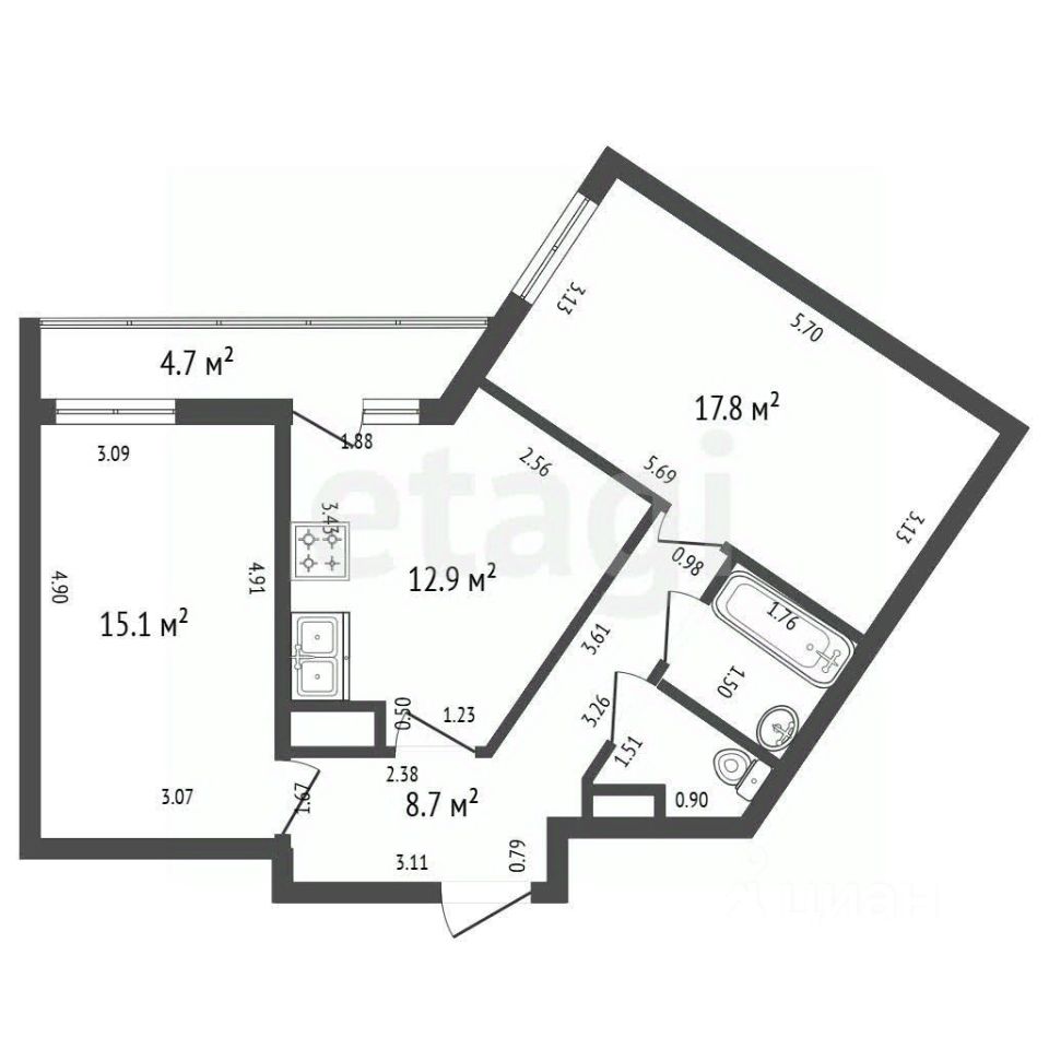 Удачная планировка: две изолированные комнаты, разделённые просторной кухней. Каждый член семьи сможет найти своё уединённое место — гармония и комфорт гарантированы!