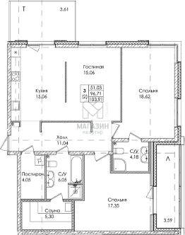 Квартира расположена в ЖК "Лисино" в малоэтажном доме на 1-ом этаже, 103,91 кв.м.