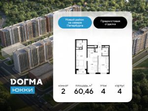 Срок сдачи: 4 кв. 2028, общей площадью 60.46 кв.м., на 4 этаже.