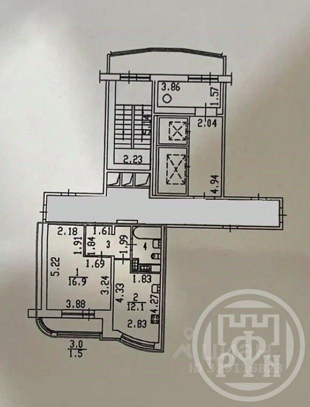 16,9 м²
