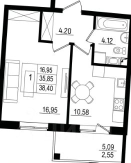 Комната 16,95 м².