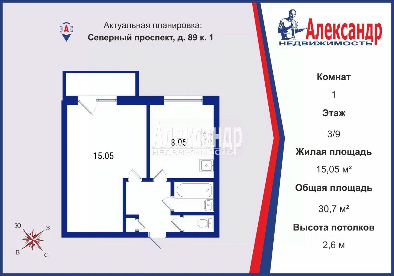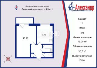 Уютная квартира 30,7 м² в тихом зелёном районе.