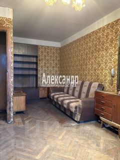 Просторная светлая комната 15,05 м² с балконом выходит окнами в тихий зеленый двор. Форма комнаты позволяет ее зонировать на приватное и гостевое пространства.