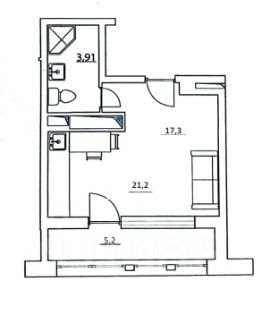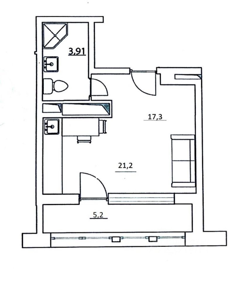 • Площадь 21,2 м² (17,3 м² жилых) + лоджия 5,2 м² (не входит в метраж) и потолки 2,8 м — в студии будет уютно и светло.