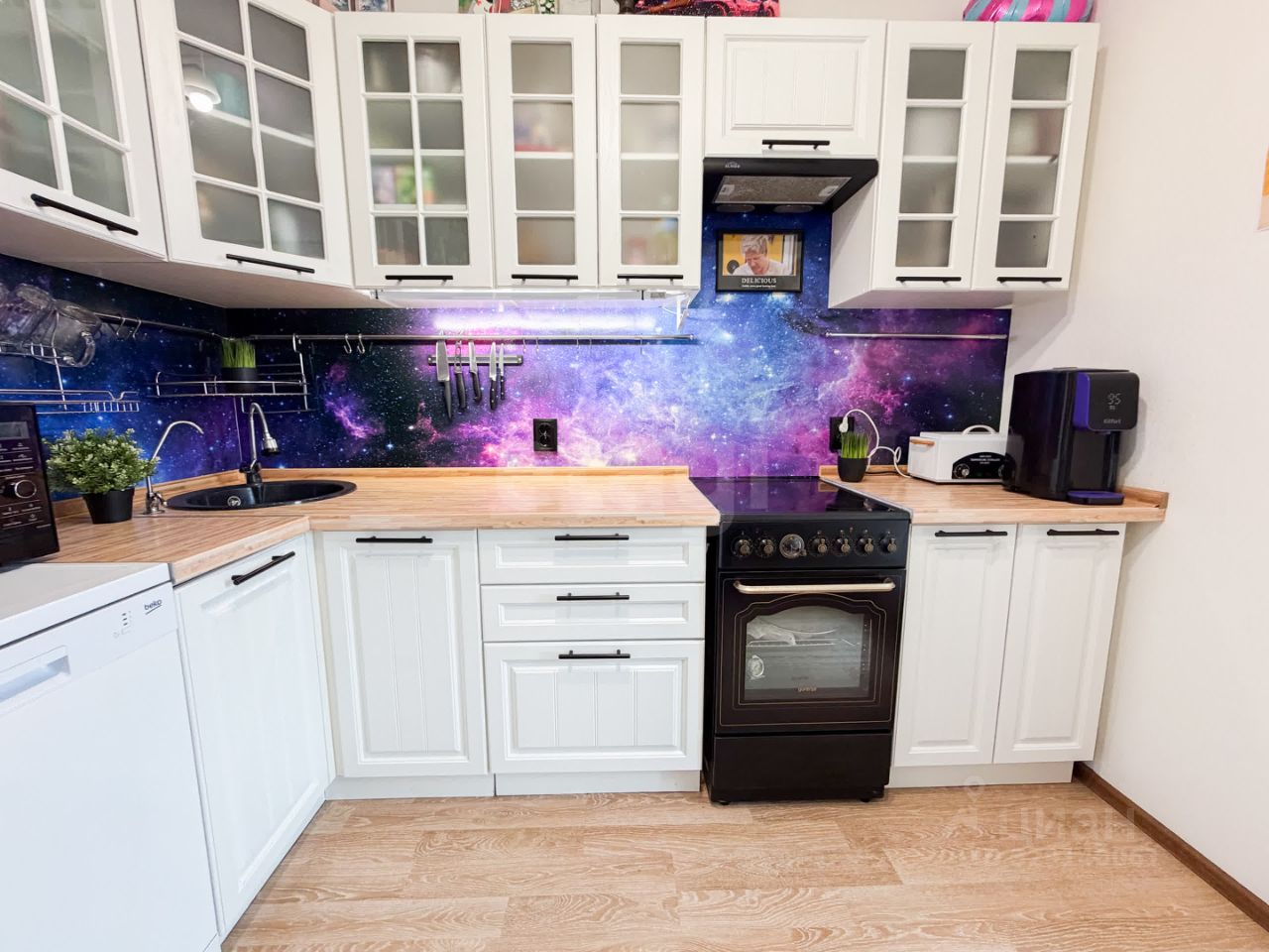 • Хранение: собственная гардеробная (редкость для однушки).
