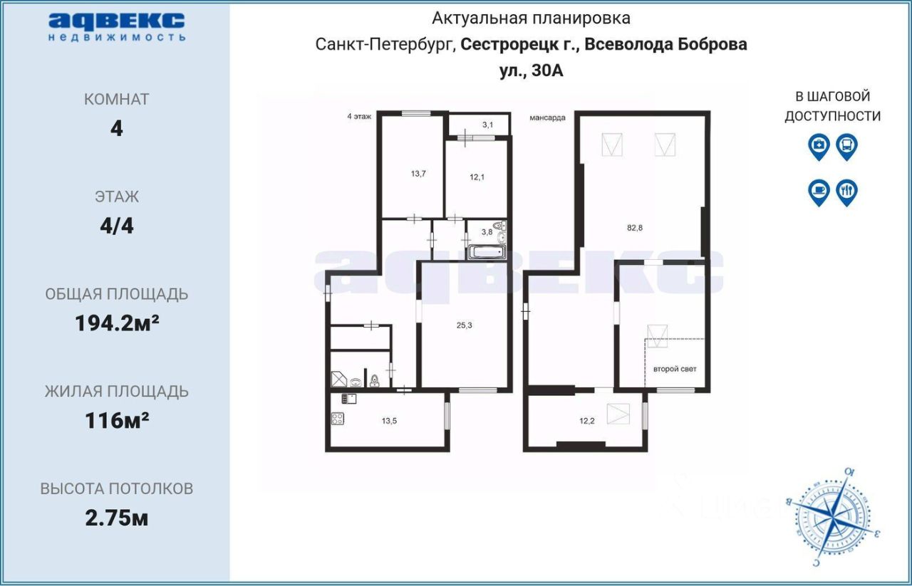 Двухуровневая квартира С МАНСАРДОЙ 194,2 квм с ВИДОМ НА ЛЕС в жк "Рай в шалаше".