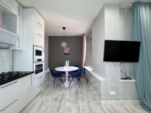 • Просторная кухня-гостиная — место для душевных встреч с близкими и спокойных повседневных дел.