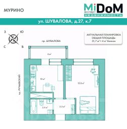 Планировка: Большая кухня-гостиная (10 м²) + просторная изолированная спальня (15 м²). В спальне легко организовать рабочее место. Совмещенный санузел (3,4 м²), просторная прихожая (3,3 м²).