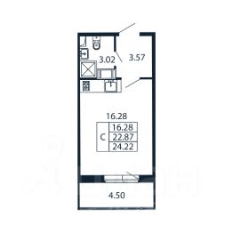Прямая продажа от застройщика! Готовая Студия 7/12/02 22.1 кв.м с чистовой отделкой на 12 этаже в сданном ЖК "Полис Лаврики".