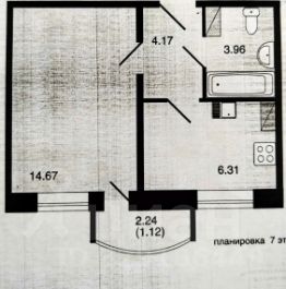 Квартира расположена на 7 этаже, площадь 29 кв.м с лоджией (небольшая 2,24 кв.м).
