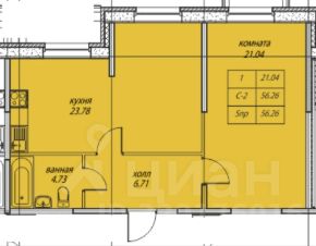 Продам 2-евро (1-комнатная) квартира площадью 55,5м2