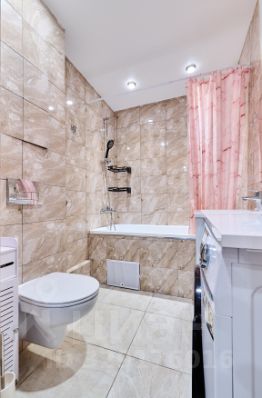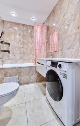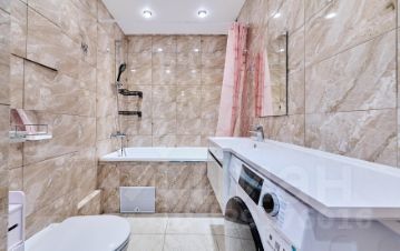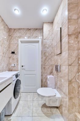 Совмещенный санузел с ванной для релаксации и местом под стиральную, сушильную машину.