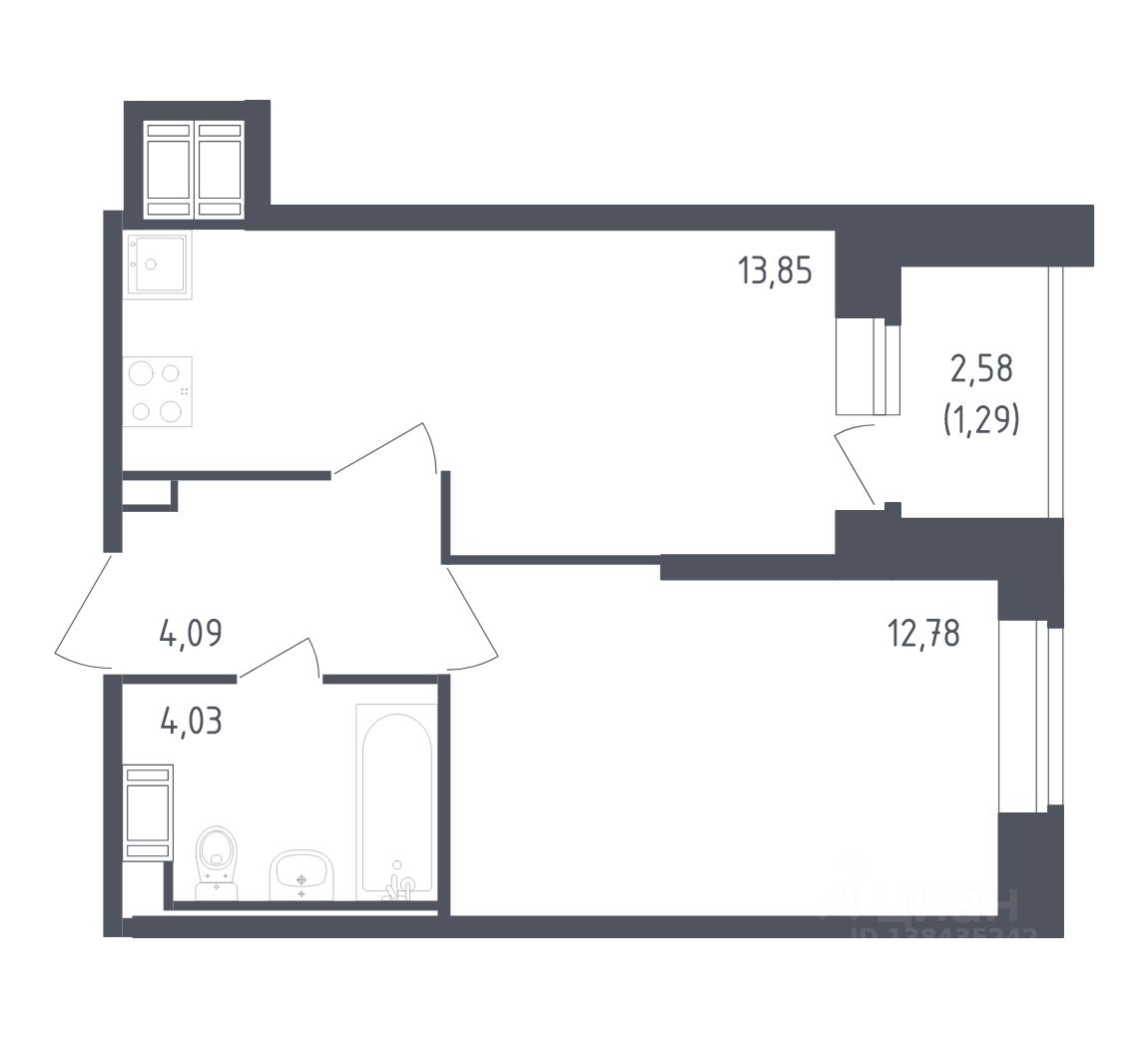 Жилая площадь12,8 м²