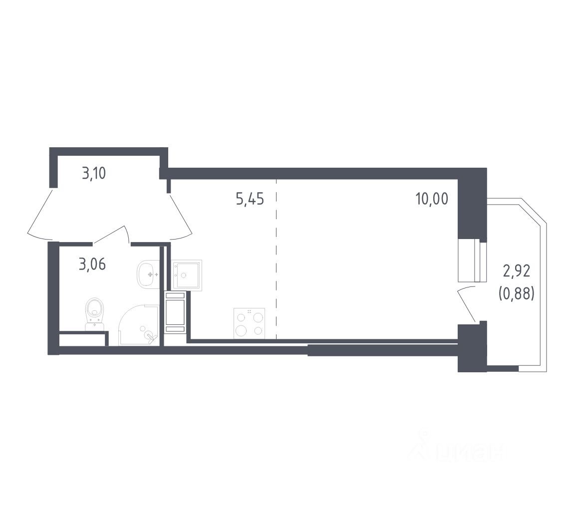 Общая площадь22,49 м²