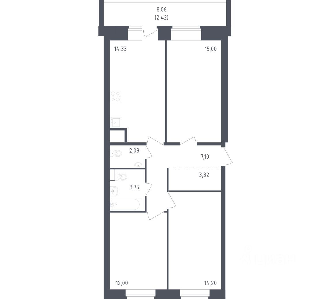 Общая площадь74,2 м²