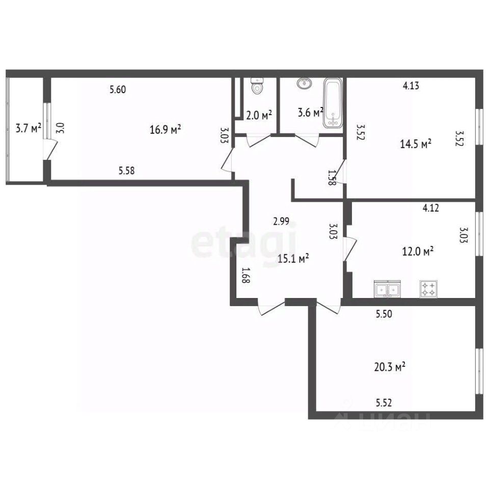 Внутреннее пространство отличается продуманной планировкой: светлые и просторные комнаты позволяют с удобством разместить гостевую зону, спальни и кабинет. Кухня-столовая оснащена встроенной техникой и предоставляет достаточно места для комфортного приготовления и приёма пищи. Квартира готова к заселению — выполнен качественный косметический ремонт с нейтральной отделкой.