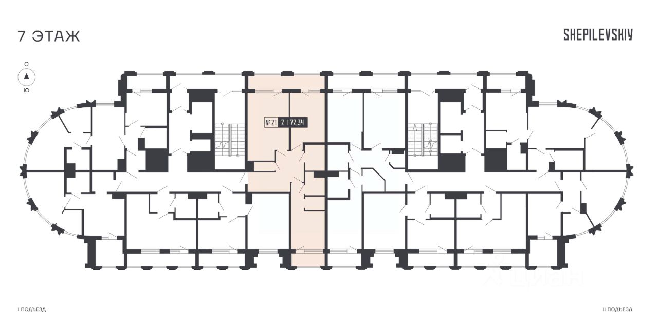 2-ком. квартира 21 на 7 этаже в секции 1 Дома SHEPILEVSKIY (Шепилевский)