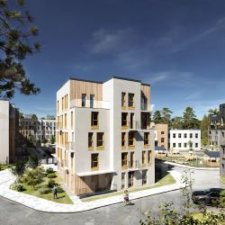 Входы в дома устроены с уровня земли, без высоких ступеней и крутых пандусов — удобно заходить с коляской, велосипедом, самокатом или с покупками в руках. В подъездах предусмотрены колясочные и аккуратные общие зоны в нейтральной гамме, которые поддерживают ощущение домашнего, а не "офисного" пространства.