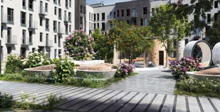 Нега — квартал для тех, кто хочет жить у природы, а не просто "видеть её издалека". Дома стоят рядом с лесом и прудом, поэтому из двора буквально несколько минут до прогулочных троп и воды. Территория закрыта от посторонних и машин: транспорт остаётся по периметру, внутри — только люди, детские игры и прогулки. Во дворе расположены детские и спортивные площадки, зоны спокойного отдыха и собственный детский сад — пространство читается и для ребёнка, и для взрослого.