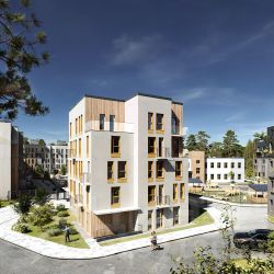Входы в дома устроены с уровня земли, без высоких ступеней и крутых пандусов — удобно заходить с коляской, велосипедом, самокатом или с покупками в руках. В подъездах предусмотрены колясочные и аккуратные общие зоны в нейтральной гамме, которые поддерживают ощущение домашнего, а не "офисного" пространства.