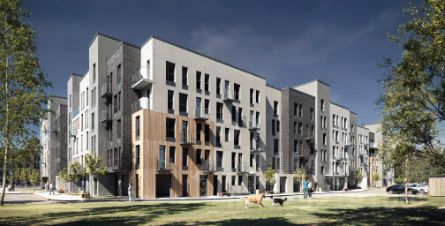 Входы в дома устроены с уровня земли, без высоких ступеней и крутых пандусов — удобно заходить с коляской, велосипедом, самокатом или с покупками в руках. В подъездах предусмотрены колясочные и аккуратные общие зоны в нейтральной гамме, которые поддерживают ощущение домашнего, а не "офисного" пространства.