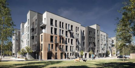 Входы в дома устроены с уровня земли, без высоких ступеней и крутых пандусов — удобно заходить с коляской, велосипедом, самокатом или с покупками в руках. В подъездах предусмотрены колясочные и аккуратные общие зоны в нейтральной гамме, которые поддерживают ощущение домашнего, а не "офисного" пространства.