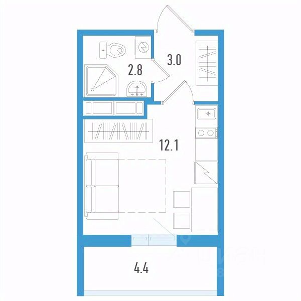 Продаётся студия в сданном доме (Старорусский пр-т, 3к2 (Дом 1)), срок сдачи: II-кв. 2025, общей площадью 19.2 кв.м., на 10 этаже.