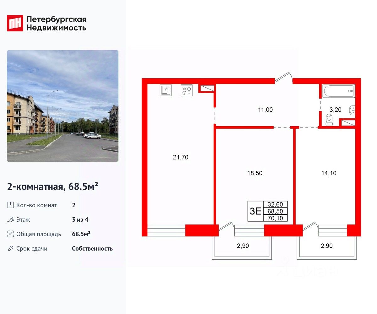 Продается просторная 2-комнатная квартира от застройщика в жилом комплексе "Итальянский Квартал" во Всеволожском районе.