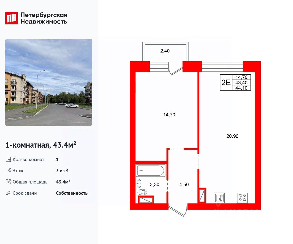 Продается просторная 1-комнатная квартира от застройщика в жилом комплексе "Итальянский Квартал" во Всеволожском районе.