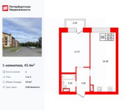 Удобная, классическая планировка. Общая площадь квартиры - 43.4 м², высота потолка 2.58 м.