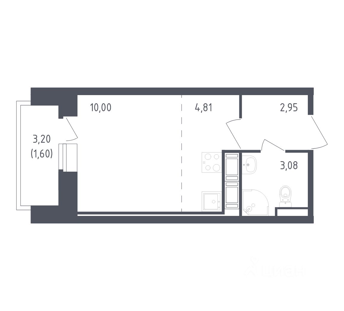 Общая площадь22,44 м²