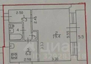Общая площадь квартиры без учета лоджии - 34,1 м2. Жилая комната с двумя окнами - 19,4 м2, совмещенный санузел в кафеле.