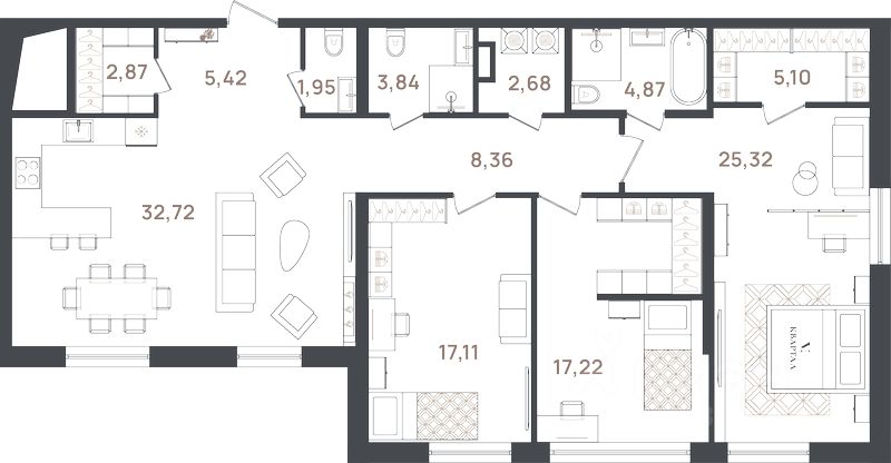 Продаётся 4-комнатная квартира в строящемся доме (Корпус 4), срок сдачи: II-кв. 2026, общей площадью 127.46 кв.м., на 2 этаже. Новый жилой комплекс "Новый дом" от застройщика "Графит" расположен по адресу: Россия, Санкт-Петербург, Пушкин, Новая улица, 20А