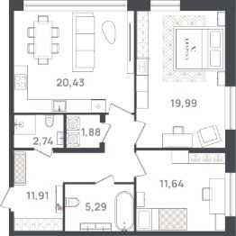 Продаётся 3-комнатная квартира в строящемся доме (Корпус 3), срок сдачи: II-кв. 2026, общей площадью 73.88 кв.м., на 1 этаже. Новый жилой комплекс "Новый дом" от застройщика "Графит" расположен по адресу: Россия, Санкт-Петербург, Пушкин, Новая улица, 20А