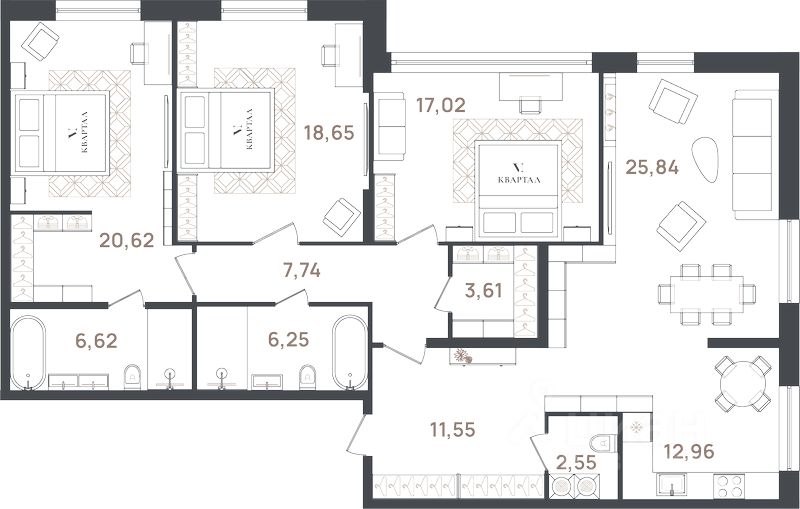 Продаётся 4-комнатная квартира в строящемся доме (Корпус 2), срок сдачи: II-кв. 2026, общей площадью 133.41 кв.м., на 1 этаже. Новый жилой комплекс "Новый дом" от застройщика "Графит" расположен по адресу: Россия, Санкт-Петербург, Пушкин, Новая улица, 20А