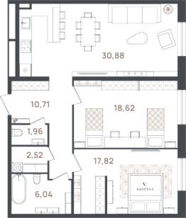 Продаётся 3-комнатная квартира в строящемся доме (Корпус 2), срок сдачи: II-кв. 2026, общей площадью 88.51 кв.м., на 1 этаже. Новый жилой комплекс "Новый дом" от застройщика "Графит" расположен по адресу: Россия, Санкт-Петербург, Пушкин, Новая улица, 20А