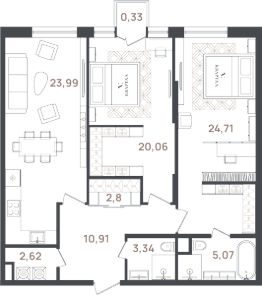Продаётся 3-комнатная квартира в строящемся доме (Корпус 1), срок сдачи: II-кв. 2026, общей площадью 93.82 кв.м., на 3 этаже. Новый жилой комплекс "Новый дом" от застройщика "Графит" расположен по адресу: Россия, Санкт-Петербург, Пушкин, Новая улица, 20А