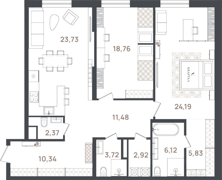 Продаётся 3-комнатная квартира в строящемся доме (Корпус 1), срок сдачи: II-кв. 2026, общей площадью 109.41 кв.м., на 3 этаже. Новый жилой комплекс "Новый дом" от застройщика "Графит" расположен по адресу: Россия, Санкт-Петербург, Пушкин, Новая улица, 20А