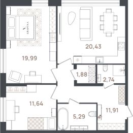 Продаётся 3-комнатная квартира в строящемся доме (Корпус 1), срок сдачи: II-кв. 2026, общей площадью 73.88 кв.м., на 1 этаже. Новый жилой комплекс "Новый дом" от застройщика "Графит" расположен по адресу: Россия, Санкт-Петербург, Пушкин, Новая улица, 20А
