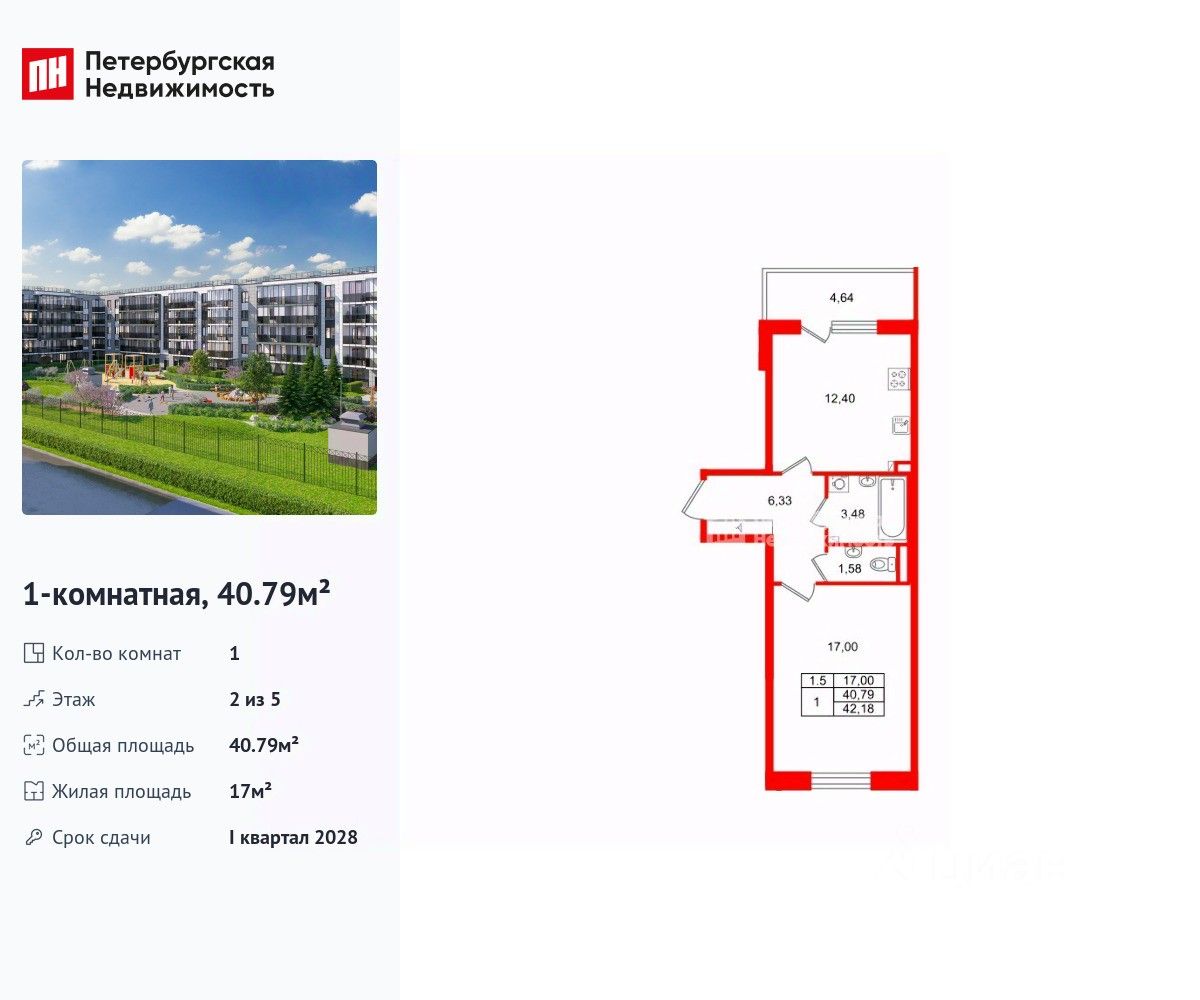 Удобная, классическая планировка, кухня 12.4 м², просторная прихожая 6.33 м². Общая площадь квартиры - 40.79 м², жилая 17 м², высота потолка 2.77 м.