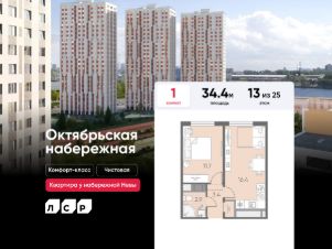 Продается 1-комнатная квартира в ЖК "Октябрьская набережная" на 13 этаже. Общая площадь составляет 34.40 кв. м. Квартира с чистовой отделкой . Жилой комплекс "Октябрьская набережная" располагается по адресу Санкт-Петербург, Невский.