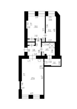 Кухня-гостиная 27,4 кв. м, две смежные комнаты 15+11.2 кв.м.