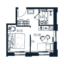 Старт продаж доходной недвижимости! Юнит 1/08/16 Евро-двушка 28.78 кв.м на 8 этаже цена 12390412 руб.